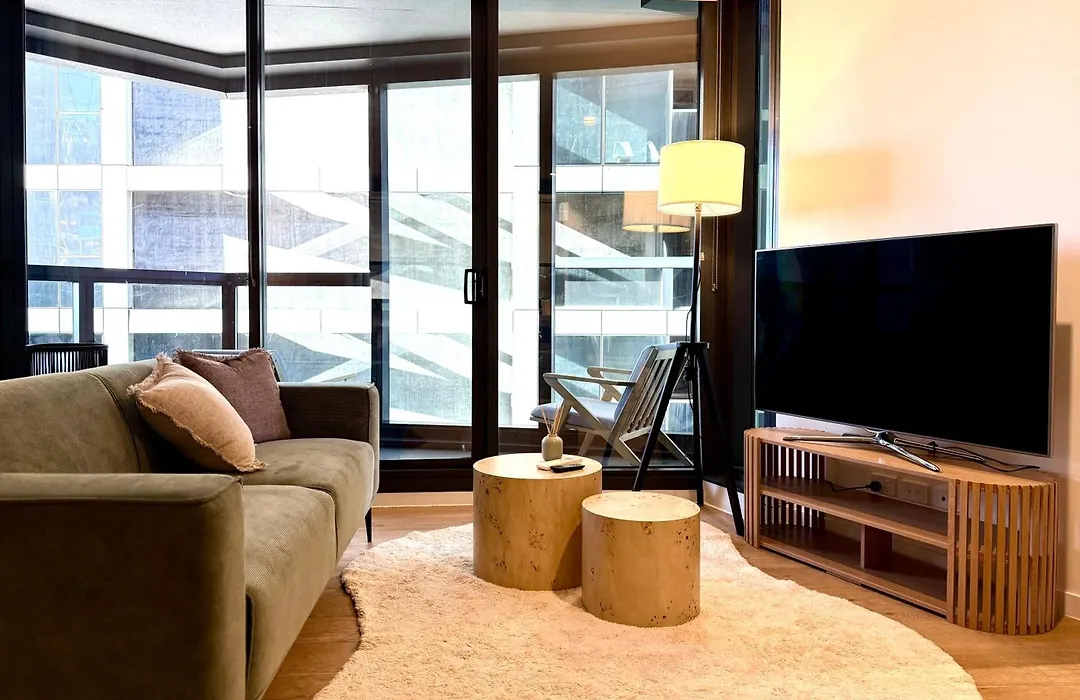 La résidence spacieuse comprend un balcon et un coin salon avec une climatisation pour un plus grand confort. Profitez du confort d'une salle de bain dans les logements At Home In Melbourne - 2 Bedrooms & 2 Bathrooms With Gym And Pool, équipée d'un sèche-cheveux et des draps de bain. Une toilette séparée et une douche sont également disponibles.